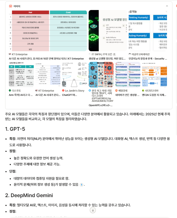 AI 시스템들은 계속 발전하고 있으며, 특히 멀티모달 능력과 특정 분야에 특화된 기능이 강화되는 추세다.